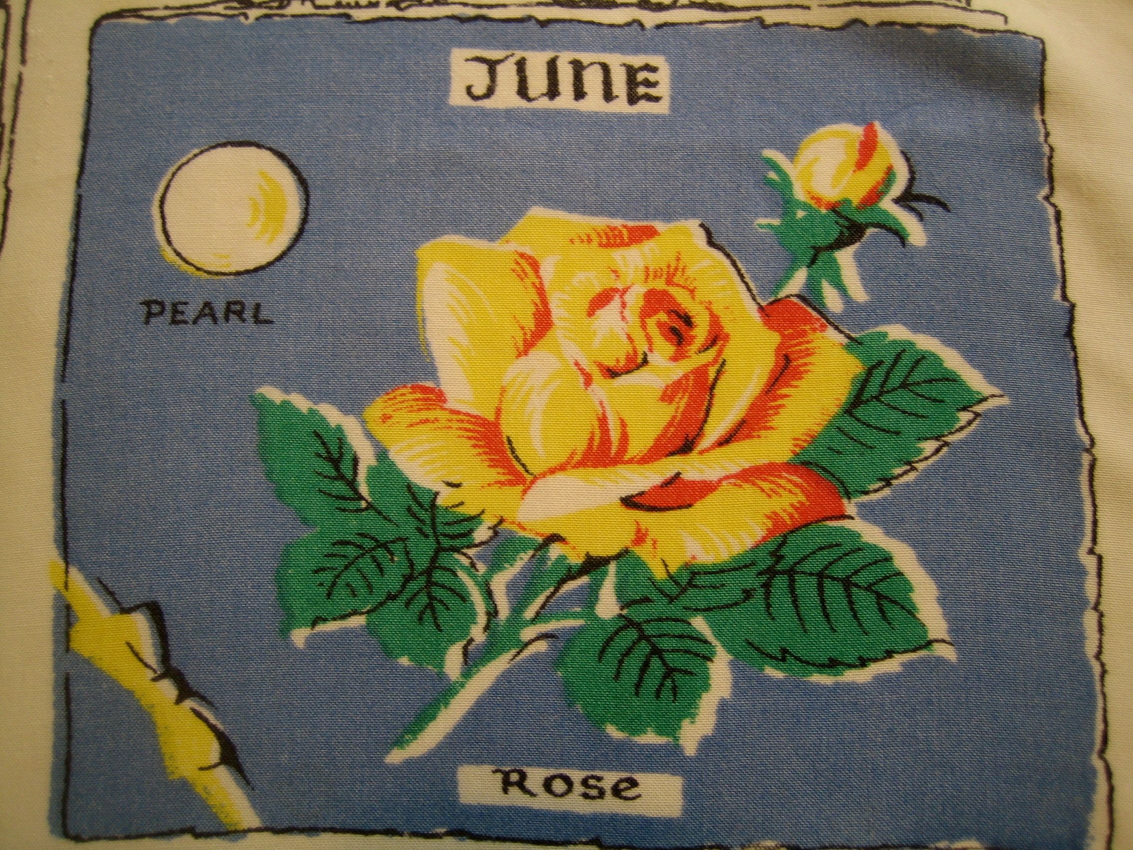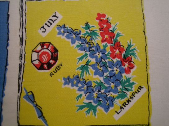 As well as the vintagey (50s? 60s?) flowers, I love how quaint and twee it is. A cloth just for birthdays, which women must have laid on the table to serve tea and birthday cake to their friends or family.