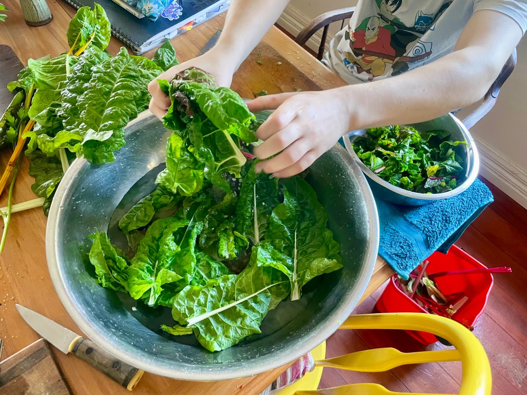 You might ask why we’d bother doing this when silverbeet grows all year round in most of New Zealand’s climate? I suppose a big motivator is frugality, but also, I find I use more silverbeet if it is prepared this way. I also loathe waste and, because I know the effort I’ve put into growing the food, I prefer to have it travel through the kitchen rather than go straight from garden bed to the compost heap.