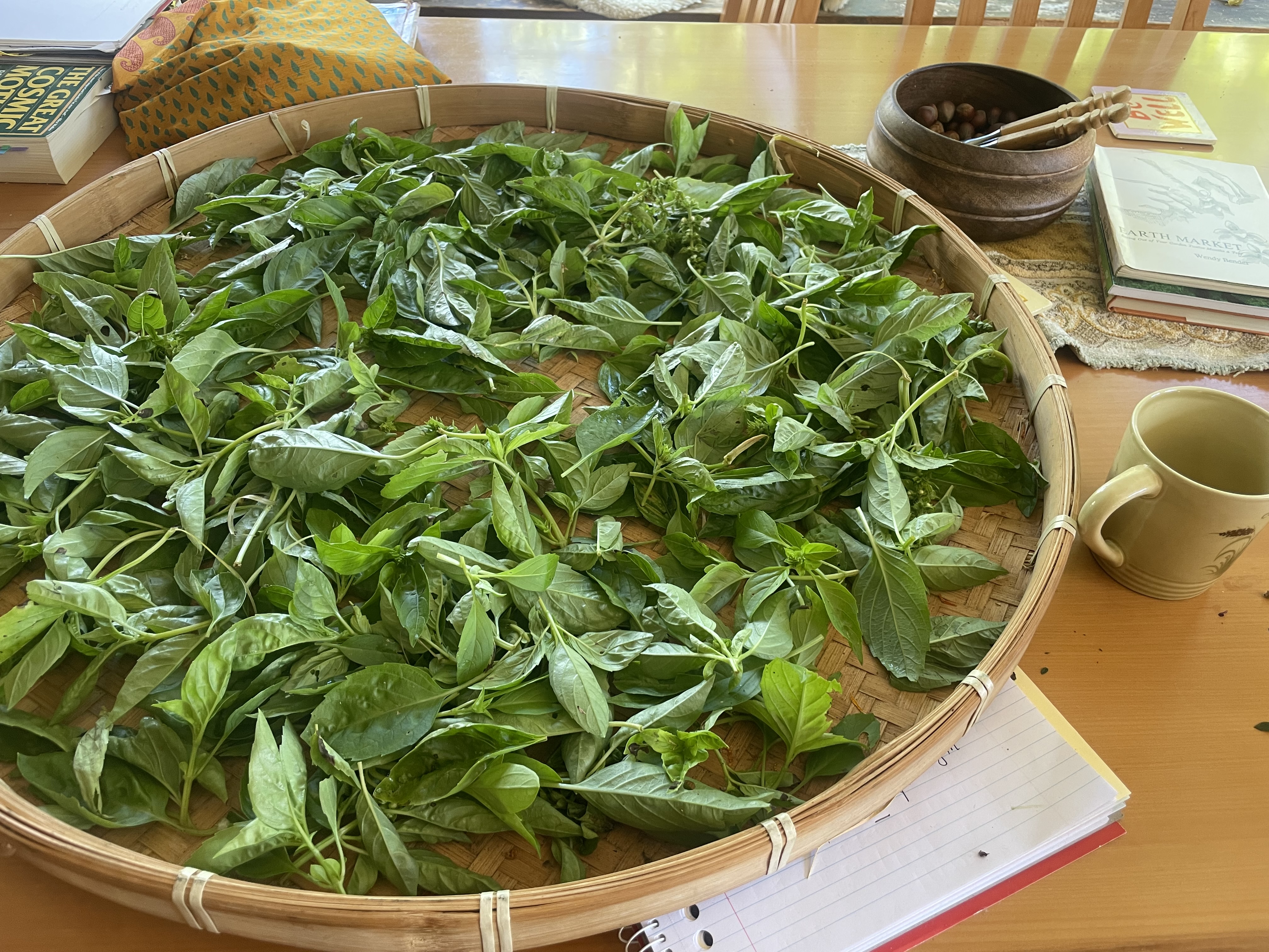 The celery stalks went into dinner and the fridge. The celery greens and flat leaf parsley bolt-stems we chopped up and put into our dehydrator. I will put them and some NZ sea salt through our electric spice grinder to make a herb salt which is great for adding to soups and stews.