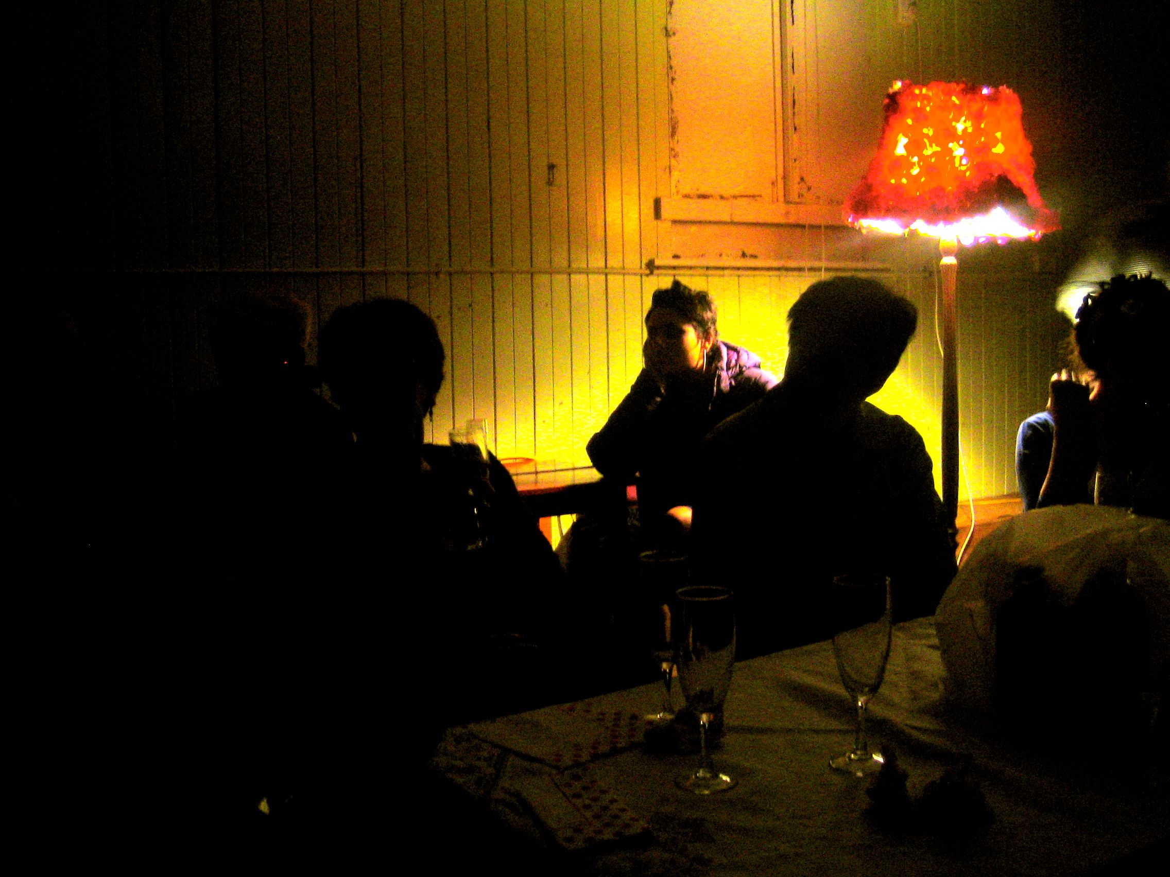 Here is a random shot of some people enjoying the night – I wanted to show you the beautiful rose-lamp! :